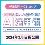2026年3月8日 / 最終更新日時 : 2026年3月8日 学び舎mom イベント情報 【AI BLOOM JAPAN】3月全日程公開 AI BLOOM JAPAN 生成AI人材育成プロジェクト 桜の花びらが繋がって満開になるように。 あなたの学びを、日本中の力へ。 誰もがAIスキルを手にできる環境を整える。 私たちは、地域や家庭、中小企業の皆様に寄り添 […]