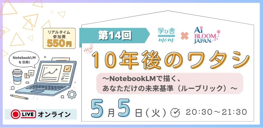 イベント情報:5/5(火・祝)開催 第13回 10年後のワタシ 〜NotebookLMで描く、あなただけの未来基準(ルーブリック)〜